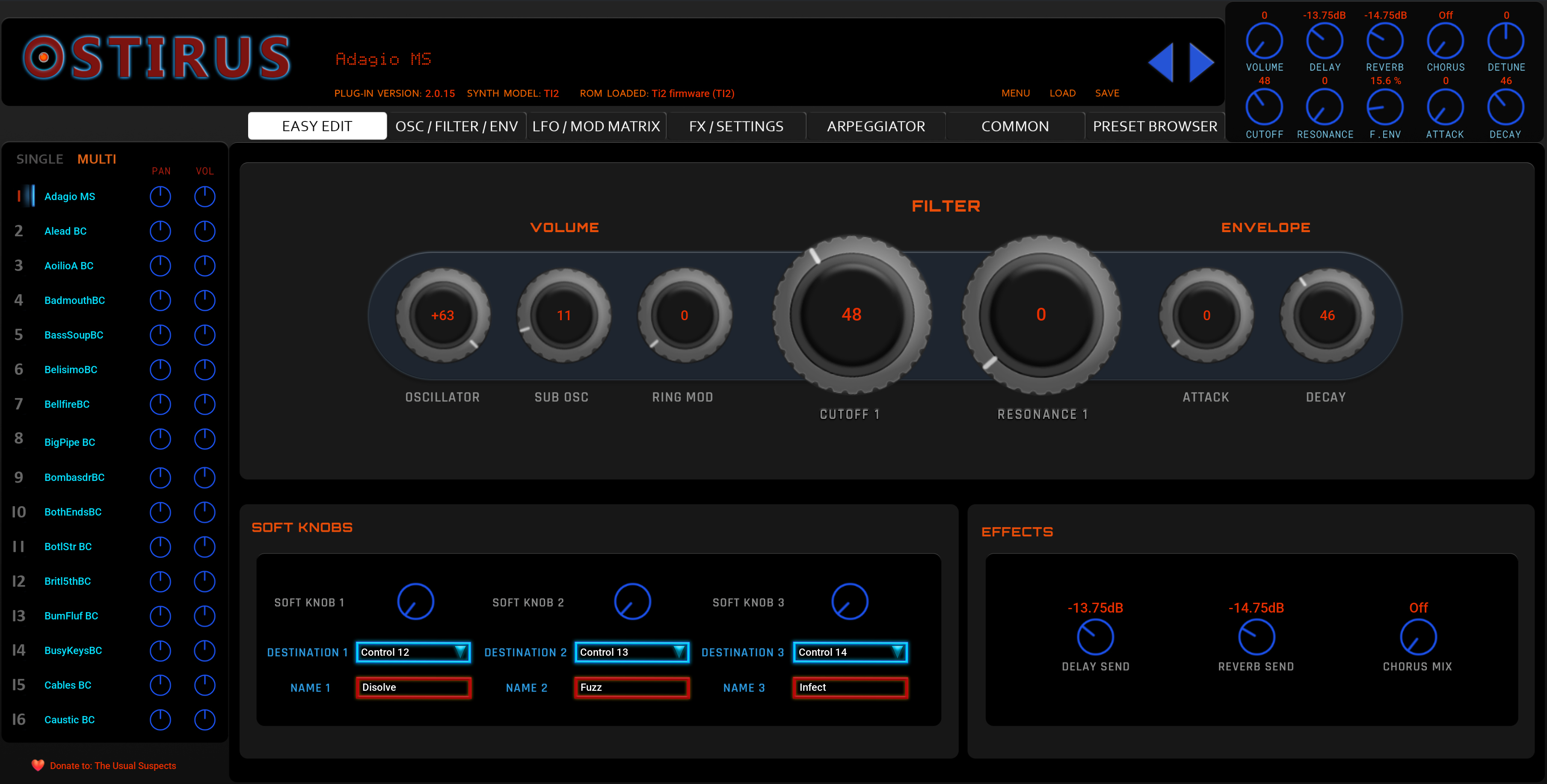 - Merged Osc/Filter/Env, LFO/Mod Matrix, and FX1/FX2 tabs for faster workflow